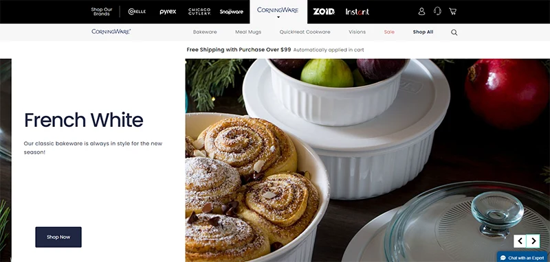 One of the leading names in the cookware industry, CorningWare, offers a selection of high-quality glass and ceramic cooking vessels. Famous for their signature white with blue pattern designs, their products are not just functional, but also a beautiful addition to any kitchen décor.