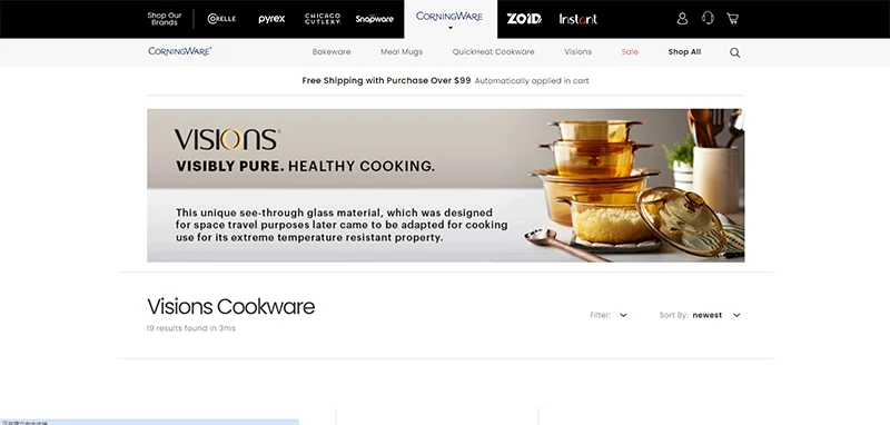Visions, a brand under CorningWare, offers glass cookware that stands out with its distinct amber or cranberry color. It’s specifically designed to withstand high temperatures making it safe for use on the stovetop, oven, or microwave.